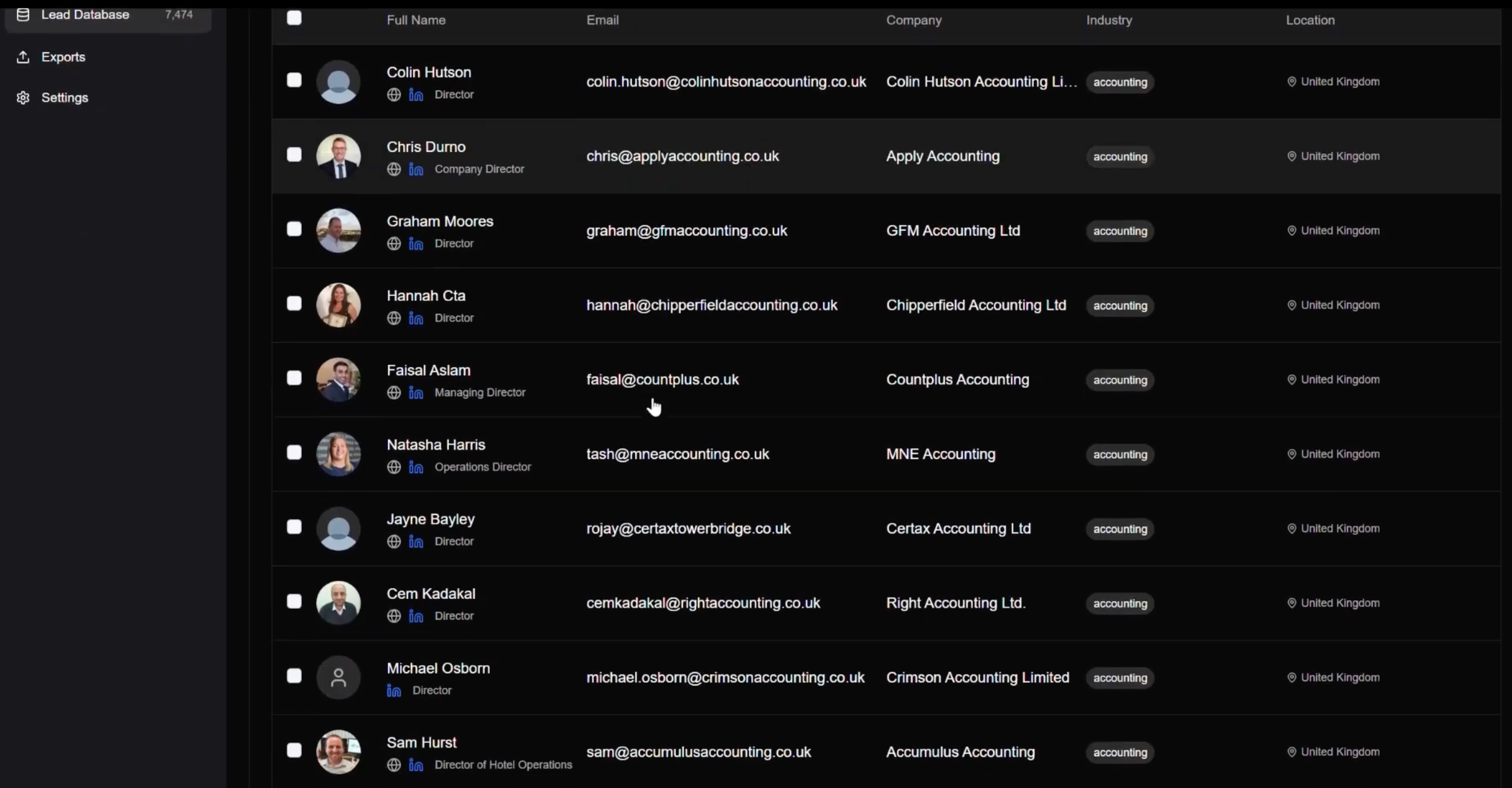 Find leads with complete details including email, phone, LinkedIn, and company information.